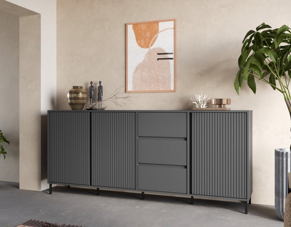 Kolekcja AVENALE to rodzina pięciu komód, które łączą minimalistyczną formę z charakterystycznymi, pionowo ryflowanymi wraz z gładkimi frontami a także smukłymi metalowymi nóżkami. Różne szerokości brył pozwalają zestawiać je w indywidualne układy – od pojedynczego akcentu w strefie wypoczynkowej po rozbudowaną zabudowę salonu lub jadalni. Uniwersalne wzornictwo sprawia, że meble łatwo dopasować zarówno do nowoczesnych, jak i klasycznych aranżacji.