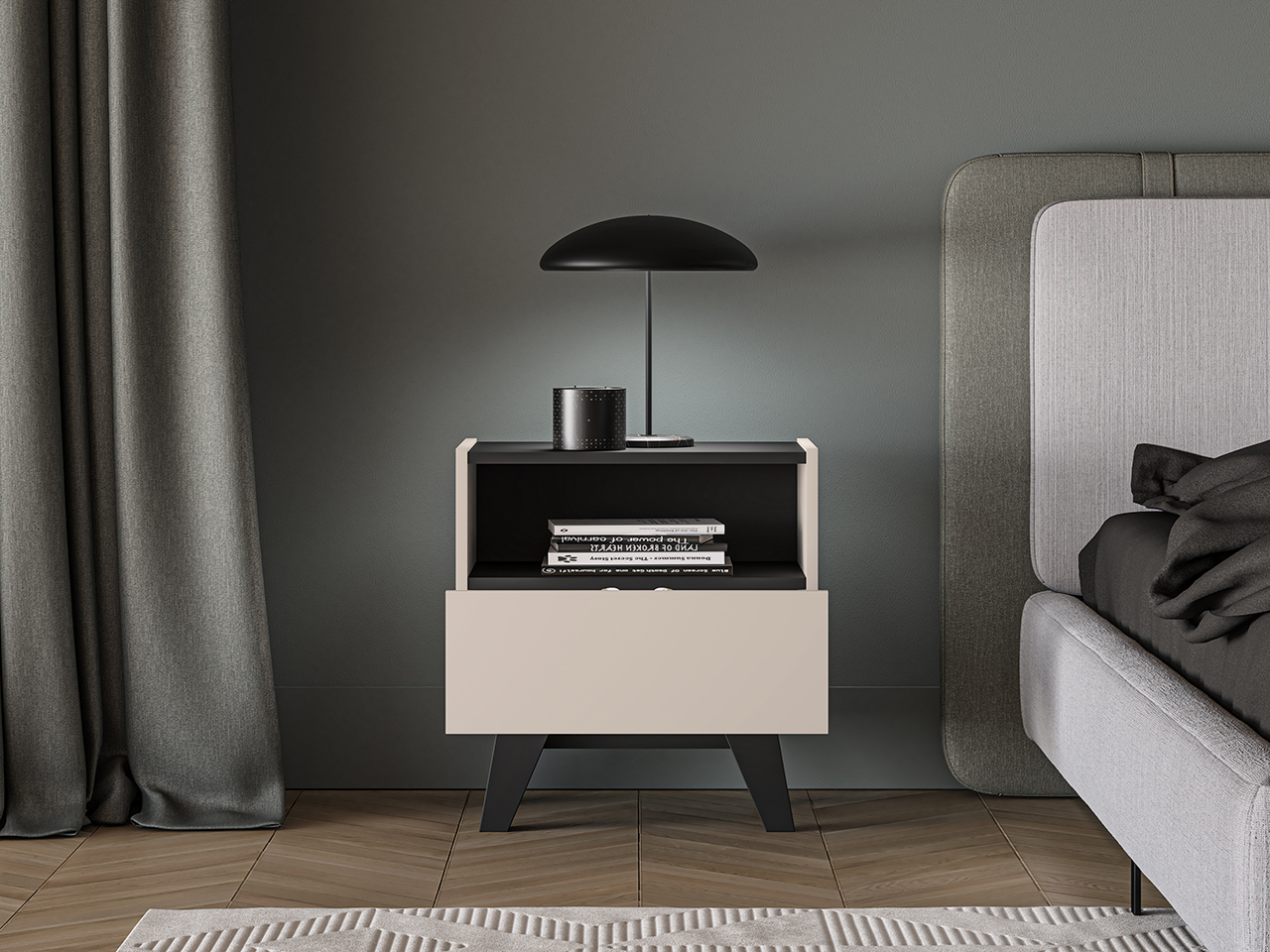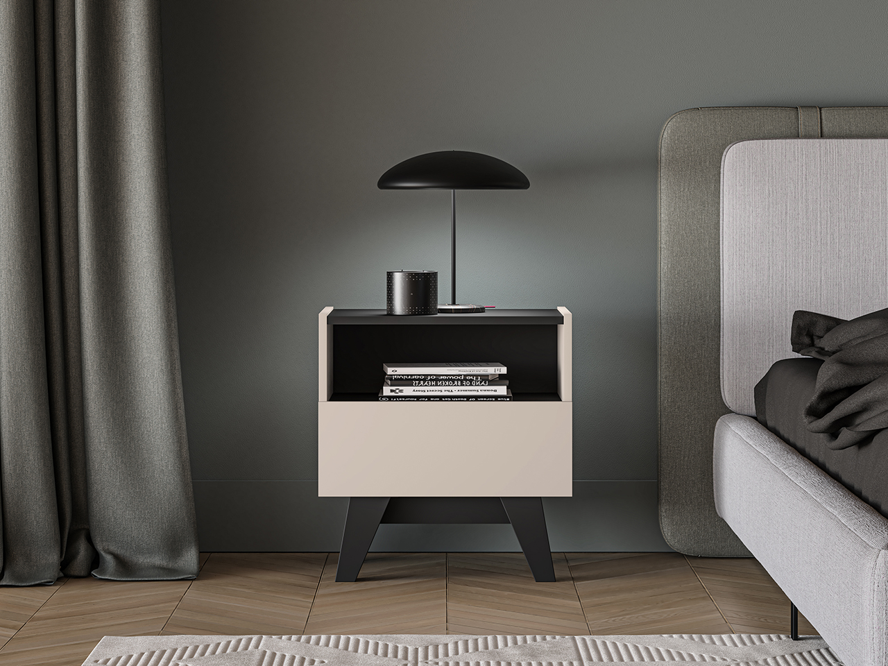 Szafka nocna Freshion 06 to niezbędny mebel przy Twoim łóżku. Dzięki blatowi na odpowiedniej wysokości masz wszystko, czego potrzebujesz zawsze pod ręką. Do otwartej wnęki odłożysz czytane gazety czy książki. Dolną część mebla tworzy pojemna szuflada.