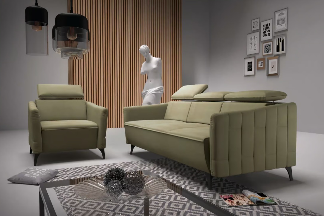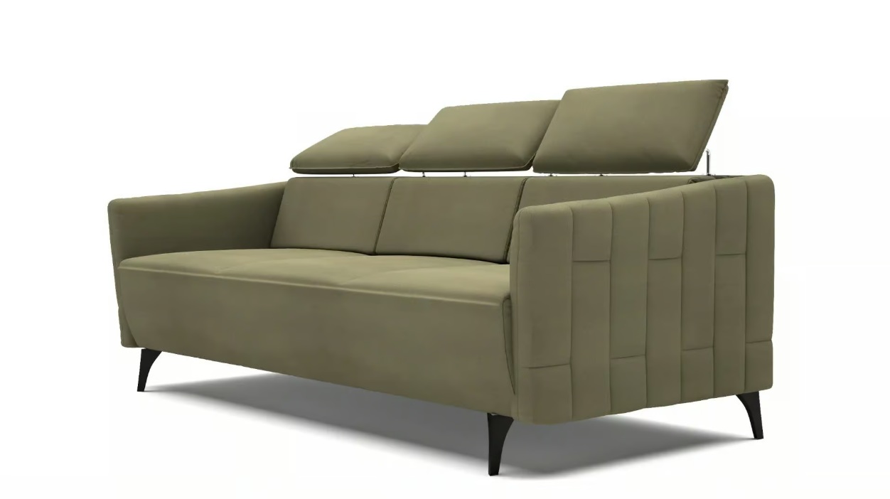 Sofa Venice to mebel, w którym prostą bryłę ozdobiono w bardzo subtelny sposób nadając jej niepowtarzalny charakter. Blenda siedziska jest przeszyta charakterystycznie, przyjmując kształt rozchylonego kielicha kwiatowego. Dzięki tak ozdobnie wykończonej blendzie mebel nabiera delikatności i wyszukanego stylu. Ozdobą mebla są kontrastowe szwy (stebnówka) dostępne w kilku kolorach. Mebel opiera się na ozdobnych nóżkach chromowanych. Wypełnienie sofy stanowią sprężyny bonellowe (12 cm), co zapewnia wysoki komfort użytkowania. Sofa posiada pojemnik na pościel. Dodatkowym atutem mebla jest wspomaganie otwierania (tzw. automat).