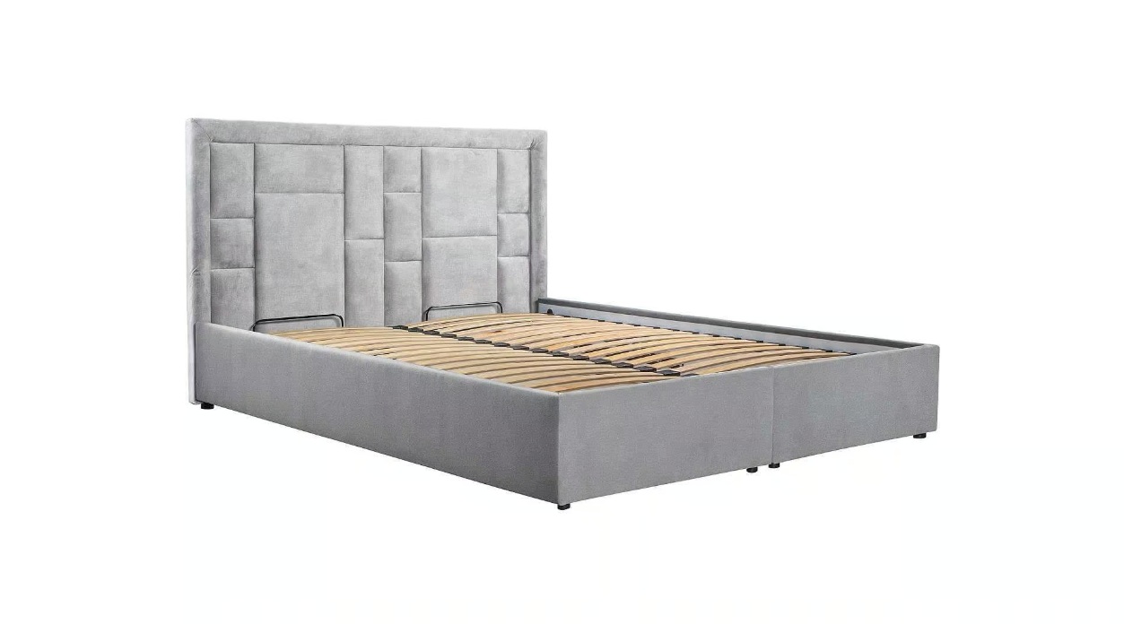 Geometryczne kształty łóżka Kuga wpisują się minimalistyczne trendy w stylistyce wnętrz. Delikatne wciągnięcia na wezgłowiu tworzą kanciaste kształty z efektem 3D. Prostota i harmonia kształtów sprawia, że łóżko komponuje się dobrze we wnętrzu nowoczesnej sypialni. Wysokie wezgłowie łóżka pozwala na wygodne wypoczywanie także w pozycji siedzącej. Wysoki komfort użytkowania zapewniają listwy sprężynujące zamocowane w pojemniku, które stanowią dodatkowy element wyposażenia.Podnośnik gazowy w pojemniku ułatwia podnoszenie leżyska. Mebel ma biały estetyczny pojemnik na pościel. Łoże dostępne w wersji dla materaca 160×200 i 140×200.