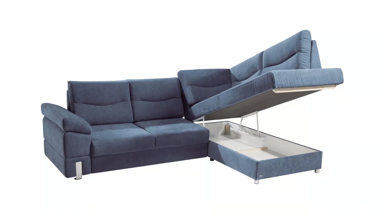 Narożnik SALSA_TREND to komfortowy narożnik dla wymagających osób. Dzięki zastosowaniu dodatkowych wałków pod lędźwiami (opcja), zwiększamy komfort użytkowania. Narożnik o podwyższonym standardzie użytkowania, dzięki zastosowaniu podwójnego systemu sprężynowania w siedzisku tzn. sprężyn bonellowych i falistych. W oparciu zastosowano piankę wysokoelastyczną HR. Podnoszone do góry oparcia wpływają korzystnie na komfort wypoczynku. Mebel wyposażony jest w nowoczesną funkcję spania typu puma oraz pojemnik na pościel.