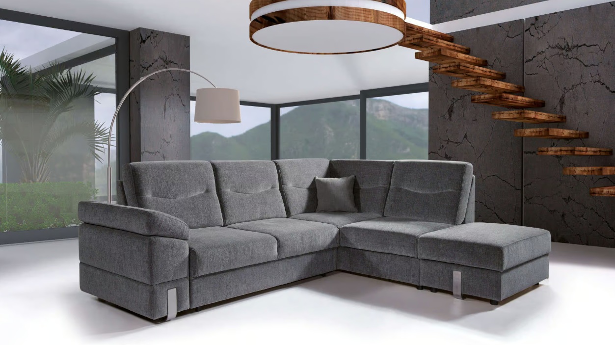 Narożnik SALSA_TREND to komfortowy narożnik dla wymagających osób. Dzięki zastosowaniu dodatkowych wałków pod lędźwiami (opcja), zwiększamy komfort użytkowania. Narożnik o podwyższonym standardzie użytkowania, dzięki zastosowaniu podwójnego systemu sprężynowania w siedzisku tzn. sprężyn bonellowych i falistych. W oparciu zastosowano piankę wysokoelastyczną HR. Podnoszone do góry oparcia wpływają korzystnie na komfort wypoczynku. Mebel wyposażony jest w nowoczesną funkcję spania typu puma. Narożnik posiada dwapojemniki na pościel.