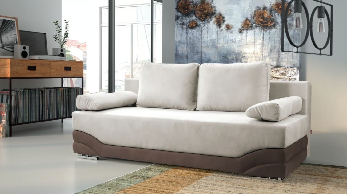 Sofa Venice to mebel, w którym prostą bryłę ozdobiono w bardzo subtelny sposób nadając jej niepowtarzalny charakter. Blenda siedziska jest przeszyta charakterystycznie, przyjmując kształt rozchylonego kielicha kwiatowego. Dzięki tak ozdobnie wykończonej blendzie mebel nabiera delikatności i wyszukanego stylu. Ozdobą mebla są kontrastowe szwy (stebnówka) dostępne w kilku kolorach. Mebel opiera się na ozdobnych nóżkach chromowanych. Wypełnienie sofy stanowią sprężyny bonellowe (12 cm), co zapewnia wysoki komfort użytkowania. Sofa posiada pojemnik na pościel. Dodatkowym atutem mebla jest wspomaganie otwierania (tzw. automat).
