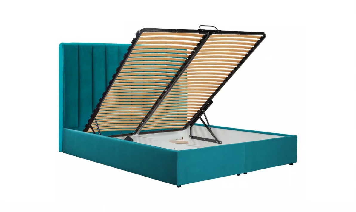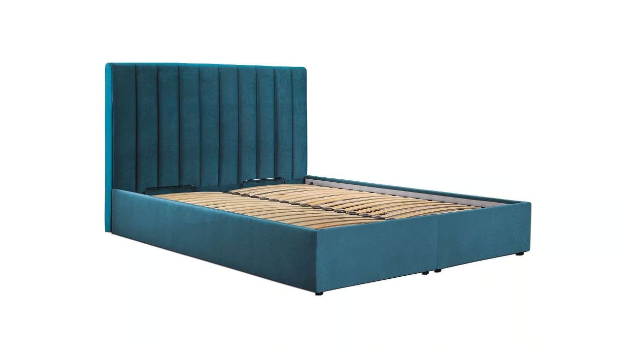 Łóżko Vertigo o prostej minimalistycznej stylistyce komponuje się dobrze w każdym wnętrzu. Pionowe przeszycia lekko uwypuklają wysokie wezgłowie łóżka. Wysoki komfort użytkowania zapewniają listwy sprężynujące zamocowane w pojemniku, które stanowią dodatkowy element wyposażenia.Podnośnik gazowy w pojemniku ułatwia podnoszenie leżyska. Mebel ma biały estetyczny pojemnik na pościel.Łóżko dostępne jest również w wersji HIGH o wymiarze 160×200 i 140×200.