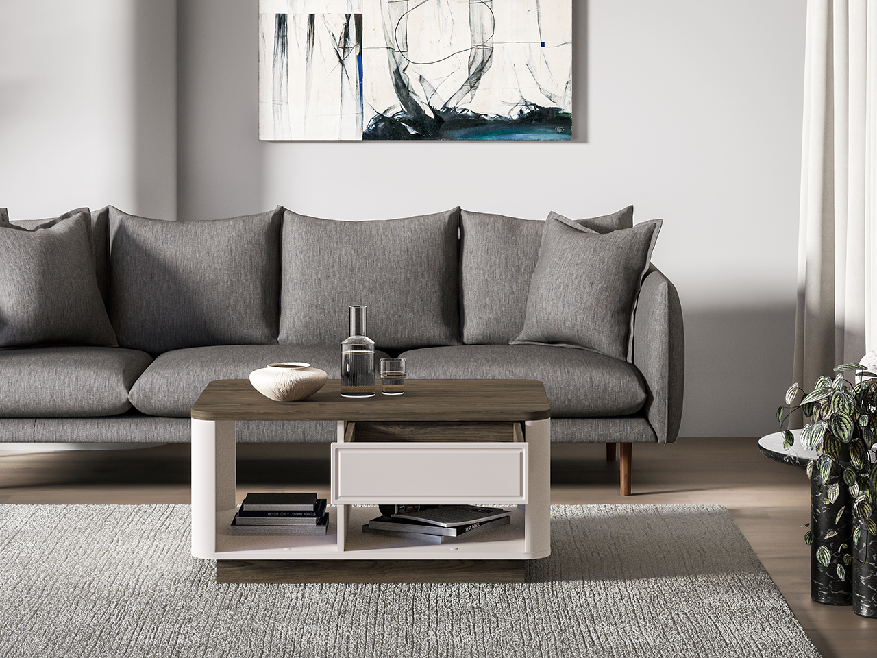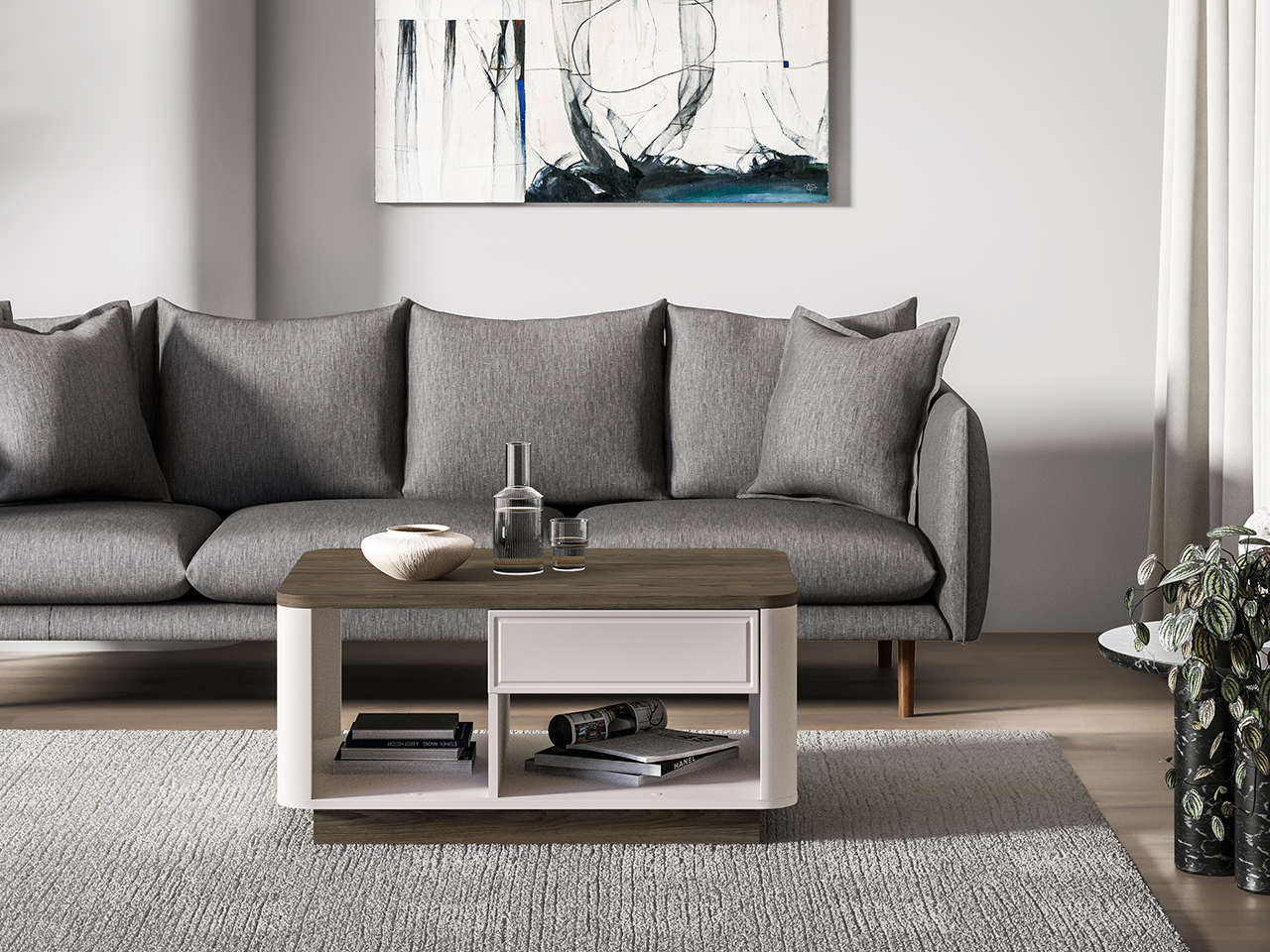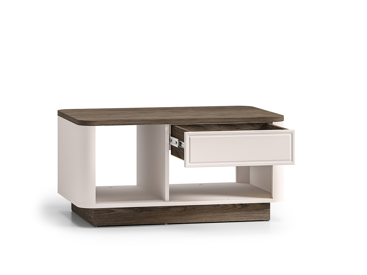 Stolik kawowy Vilavio 06 to mebel idealny do pokoju dziennego. Postawisz na nim filiżankę kawy lub odłożysz czytaną gazetę. Szeroki blat pozwoli też wyeksponować na przykład Twoje ulubione albumy. Dwie pojemne wnęki pod blatem to świetne miejsce na przechowanie książek czy kolekcji magazynów. Dzięki wygodnej szufladzie szybko i łatwo schowasz np. piloty do telewizora. Wybierz stolik Vilavio i zachowaj porządek w swoim wnętrzu.